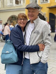 We met in 2003 during a Sunday group ride with our local cycling club. Jim asked if I wanted to break off from the group and tackle a challenging local climb. I’ve always loved a good challenge—so off we went! We’ve been climbing hills together ever since.