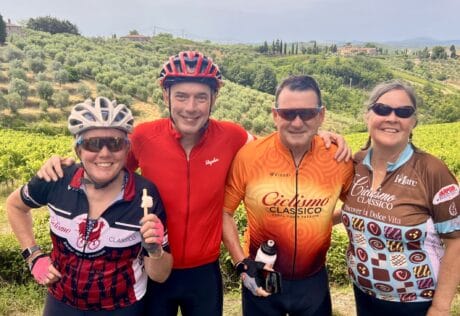 Are you a self-proclaimed or accomplished foodie or wine lover? Roll, stroll, and linger as you indulge your taste buds on our Ciclismo Savor and Sip trips. These sumptuous spins are specially crafted for beginners, cycling socialites, gallivanting gourmands, and those who crave culture and cappuccino at every turn. You’ll ride to indulge in those “carbs worth climbing for.” We’ll brake for that rare white truffle in Piedmont, sample freshly pressed olive oil drizzled on crispy Tuscan bread, or sip rare organic wines in cozy enotecas. Climb at your own pace, savor the sweeping downhill to dinner, and let us make your gastronomical and oenological dreams come true — Mangia bene!