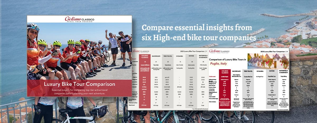 Finding the right bike tour company for your next active vacation can feel a bit overwhelming, but don’t worry—Ciclismo Classico, THE expert in Bicycle Travel since 1989, is here to help. Andiamo!