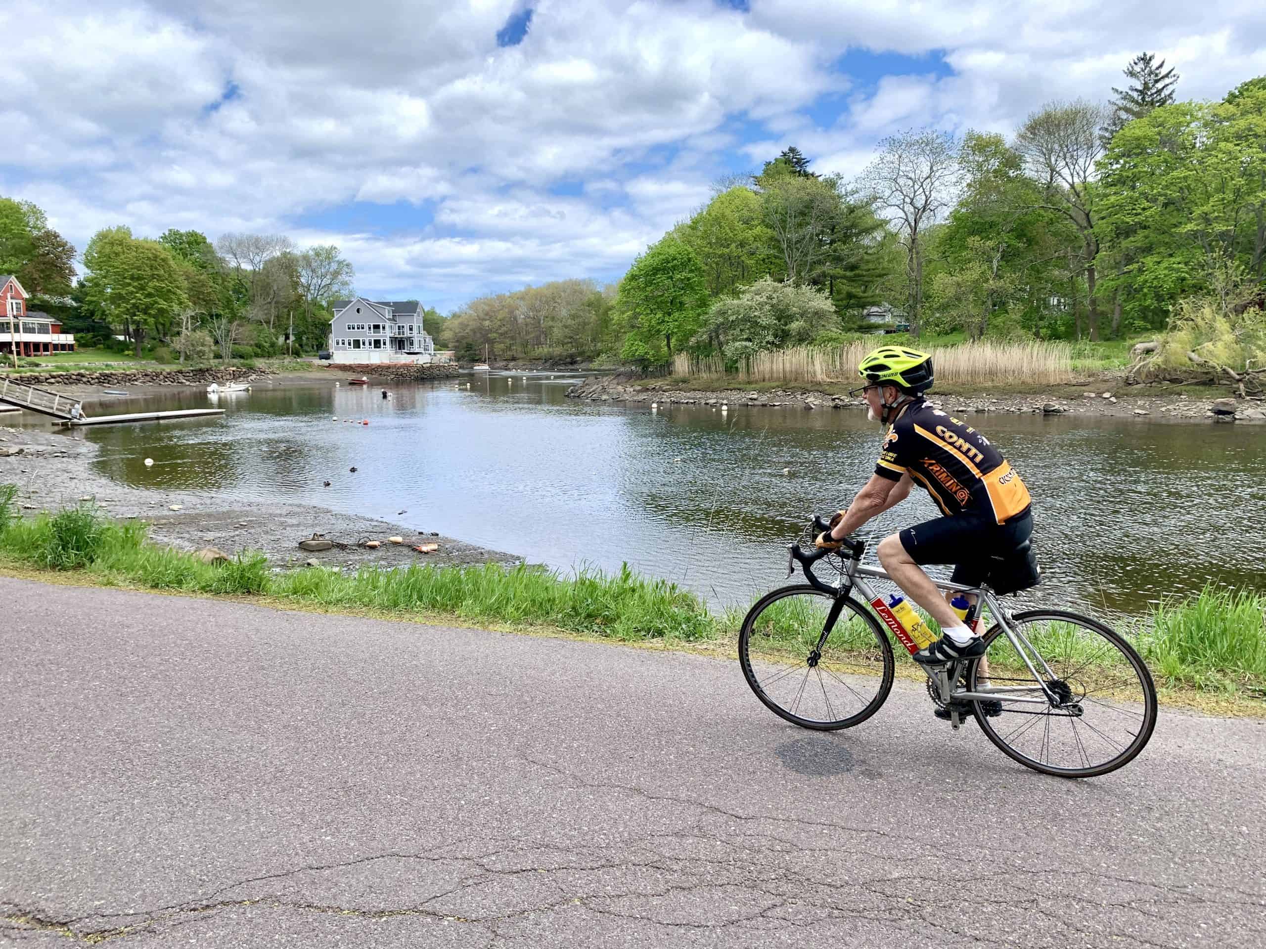 This half-day ride is led by Ipswich Town Historian Gordon Harris and begins at the Ipswich Riverwalk Mural, covering about 25 miles in one of New England’s most historic and scenic coastal communities. Starting out, our ride crosses the Ipswich River pedestrian bridge to the South Green, where the historic Whipple house is located. We wind our way along quiet back roads that were named for early Ipswich families like the Lakemans and Fellows, before stopping at Russell Orchards farm store on beautiful Argilla Rd. You’ll enjoy the gorgeous views at Crane Beach and we may even visit the wreck of the Ada K. Damon. Returning to downtown Ipswich, we’ll stop for coffee at Zumi’s or lunch at one of the town’s many casual eateries. We continue through the Meetinghouse Green and East End historic districts, where Gordon will share a few legends and a bit of history from “America’s best-preserved Puritan Town.” Next comes a seven mile loop to Great Neck with the Great Salt Marsh on either side, and climb the glacial drumlin with scenic vistas of Plum Island, Cape Ann and the Atlantic Ocean. Turning back to town, the ride follows historic High Street, home to over two dozen First Period houses constructed before 1720 to the Old North Burying Ground. You can view fascinating inscriptions on 17th and 18th Century tombstones before we head back to our start location and finish the ride.